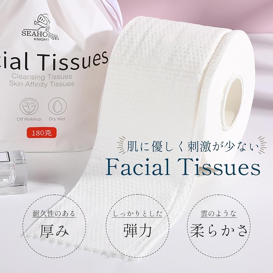 進化した、フェイシャルタオル、スキンコットンタオル、使い捨てクレンジングタオル(ペーパータオル)、20cmx19cmサイズ、ロールタイプ 3個セットです。