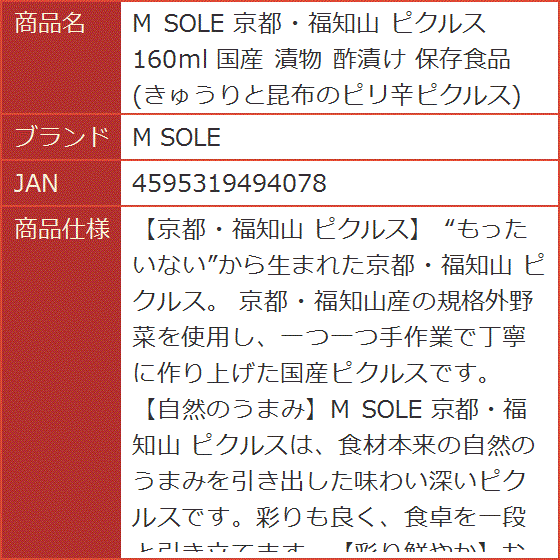 M SOLE 京都・福知山 ピクルス 160ml 国産