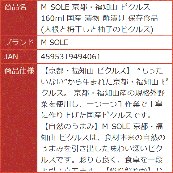 M SOLE 京都・福知山 ピクルス 160ml 国産