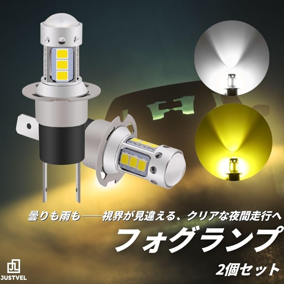 「選べる発光色:ゴールデンイエロー/ホワイト」ゴールデンイエロー(やや濃いめの黄色)は霧や雨に強く、視認性が向上。