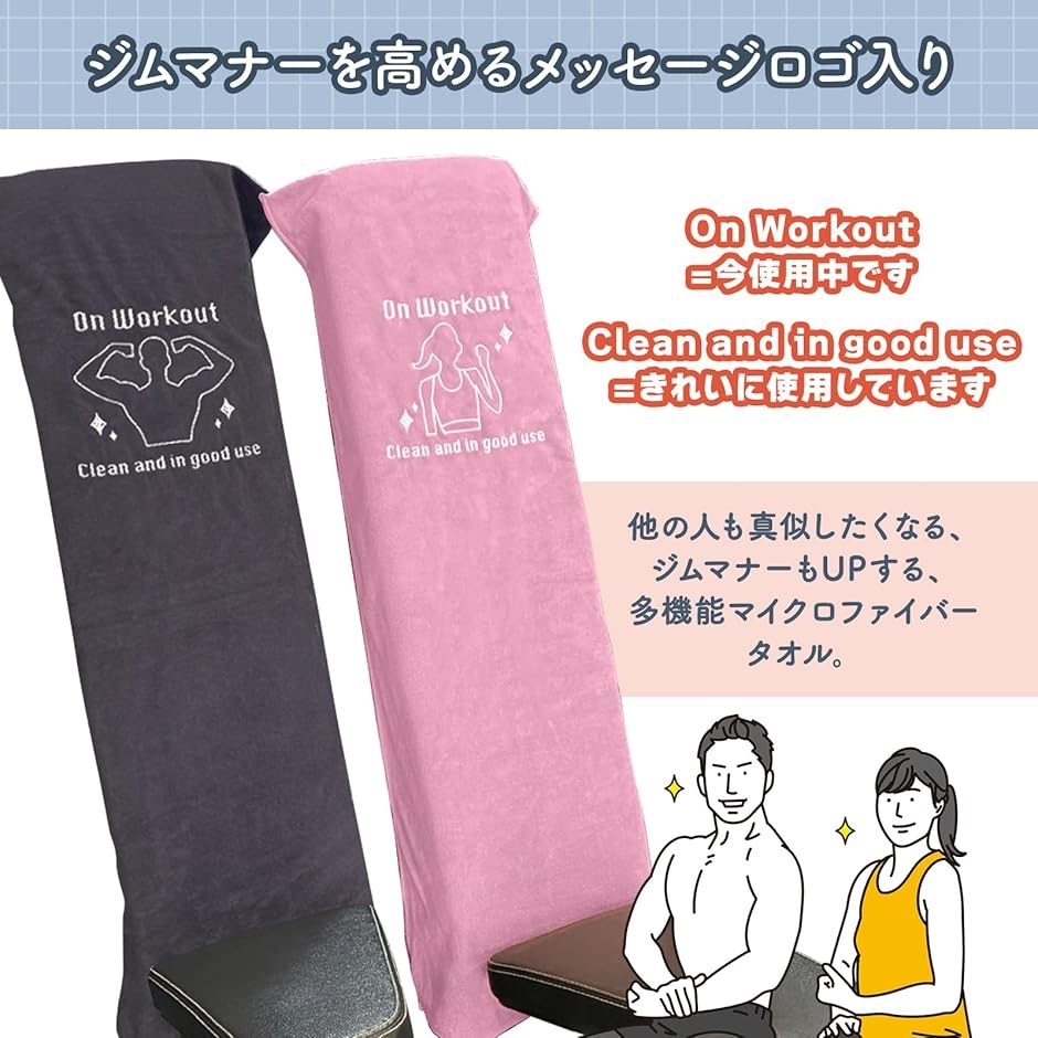 「On Workout 」(今使用中です)「Clean and in good use」(きれいに丁寧に使っています)のメッセージロゴ入り マイクロファイバータオル。