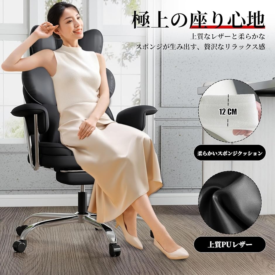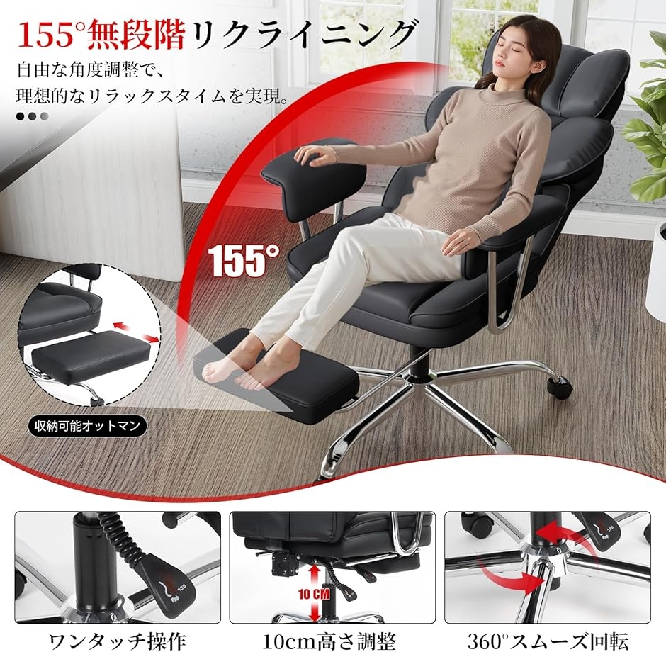 ゲーミングチェア オフィスチェア デスクチェア BoxDesignLab 155度リクライニング 座り心地良い (ブラック, 大型)