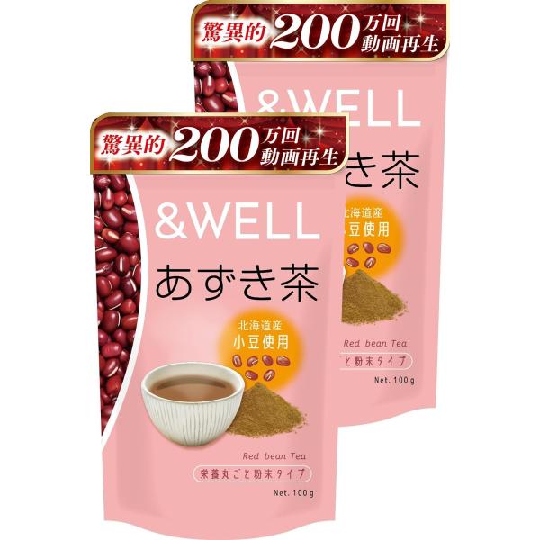 アンドウェル あずき茶 北海道産 栄養丸ごと粉末 100杯分 パウダー ノンカフェイン カリウム 含有(100gx2袋)