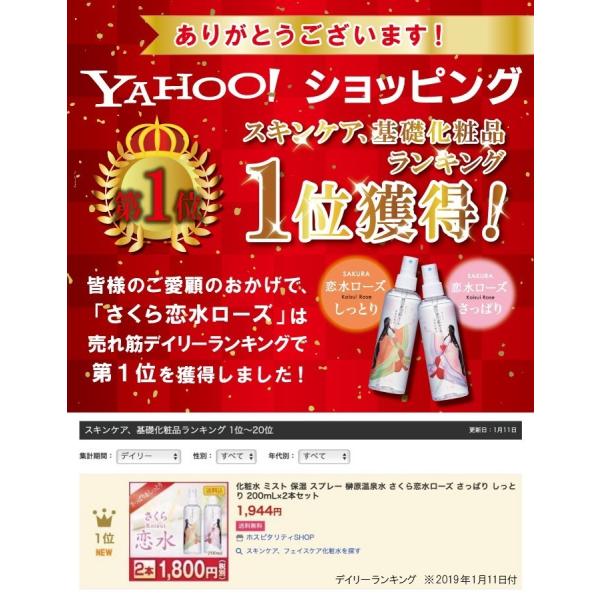 化粧水 ミスト 温泉水 榊原温泉水 さくら恋水ローズ さっぱり しっとり 50ml 2本セット