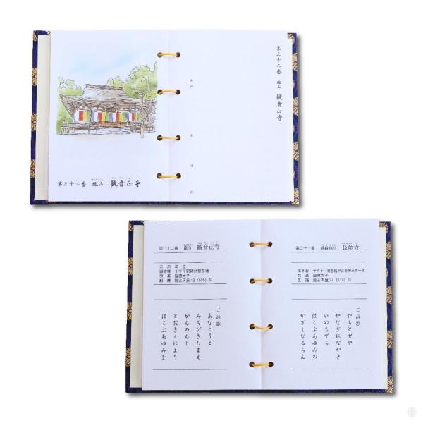 西国礼所会推薦 西国三十三所観音霊場御納経帳 カバー付 水彩画入り コンパクト紐バインダー式 紺色