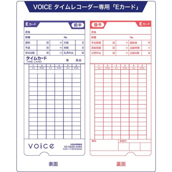【送料無料】VOICE シンプル機能タイムレコーダー VT-1000専用タイムカード Eカード100枚入