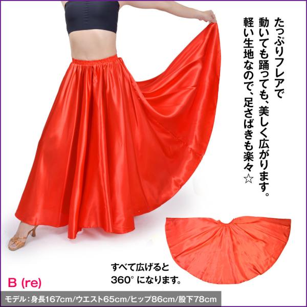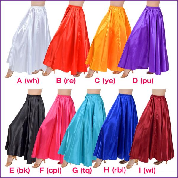 ベリーダンス衣装 ロングスカート サテン 無地 長い 広がる フレア skirt 光沢 レッスン着 ステージ衣装 EP79231 [M便 2/3]