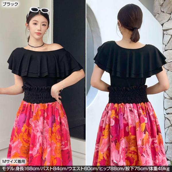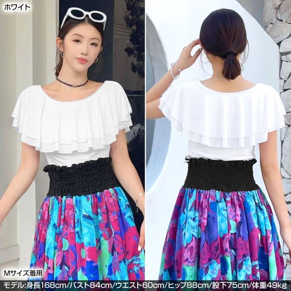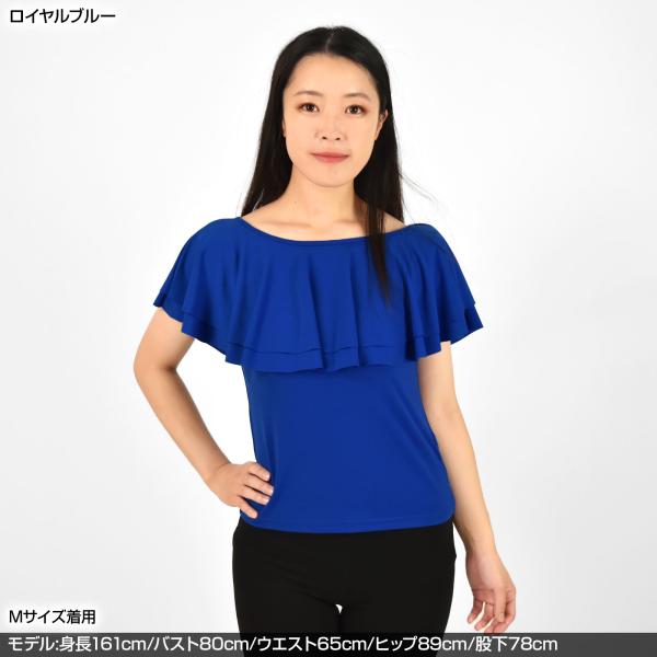 ダンストップス ボートネック2段フリルトップス tシャツ 半袖 シャツ フラ レッスンウェア レディース GH3251 [M便 2/3]