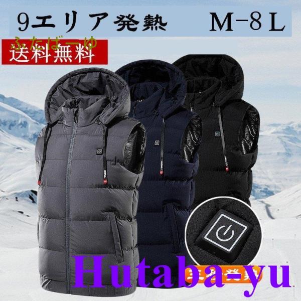 速暖ウェア 9つヒーター 電熱ベスト ヒートベスト new 防寒着 メンズ 電熱ウェア 帽子付き USB式 暖房服 作業服 長時間保温 水洗い可能 アウトドア