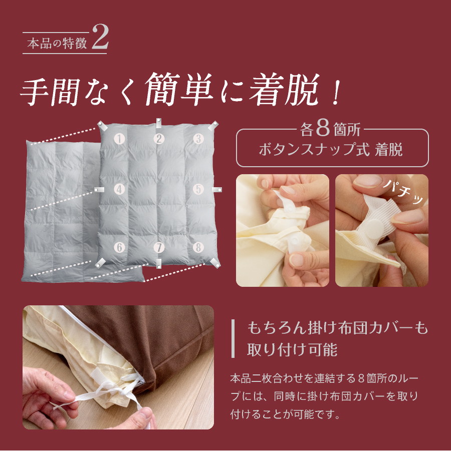 日本製 二枚合わせ 羽毛布団 シングル ライト 洗える 2枚合わせ 羽毛掛け布団 0.9kg ダウン85% シングルロング 春 夏 秋 冬 全季節 年中使える オールシーズン 丸洗い 国産
