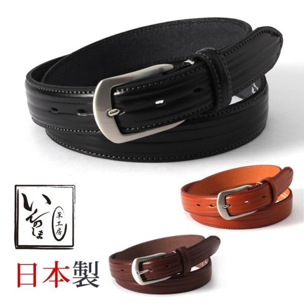 ビジネスベルト 日本製 革工房いんのしま ベルト メンズ 紳士用 本革 レザー 牛革 いんのしま ブラック 黒 ブラウン 茶 シルバー バックル