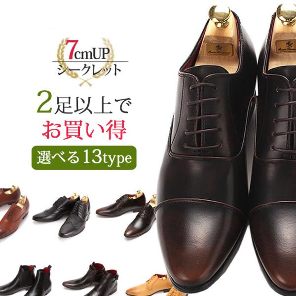 シークレットシューズ 7cmアップ 2足以上購入でクーポンが使える ビジネスシューズ ビジネス フォーマル ストレートチップ プレーントゥ ウイングチップ ブーツ