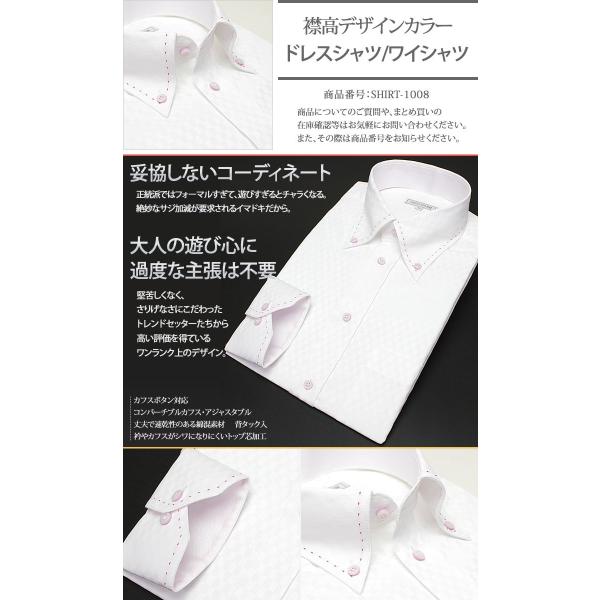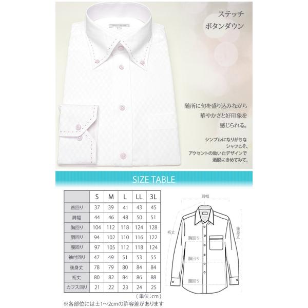 ワイシャツ 襟高デザイン ボタンダウン ステッチ 長袖ワイシャツ メンズ 紳士用 ビジネス カジュアル ホワイト 白 ピンク