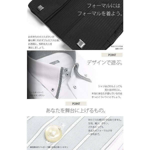 ダブルカフス ドレスシャツ ワイシャツ メンズ 紳士用 ビジネス フォーマル 長袖 ボタンダウン ワイドカラー ダブルカフス ストライプ ホワイト 白 黒 ピンク