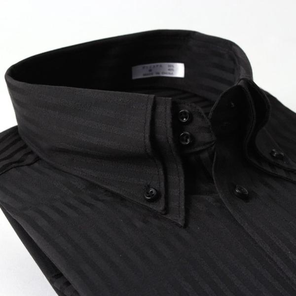 長袖ワイシャツ ボタンダウン 衿高デザイン 黒 ブラック ストライプ メンズ 紳士用 ドレスシャツ Yシャツ ビジネス カジュアル