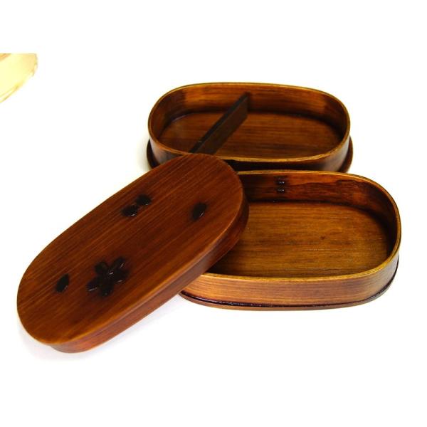 二段 さくら長小判形 お弁当箱 曲げワッパ お弁当箱 すり漆 わっぱ 子供用 小判型 まげわっぱ 漆塗 天然木 おしゃれ かわいい 和食器