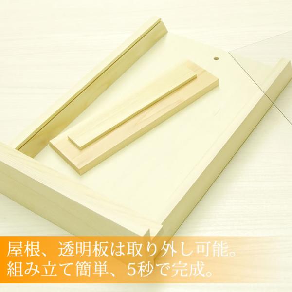 ※前面の透明板が屋根のストッパーの役割になっていますので必ず透明板をはめ込んでからご使用ください。