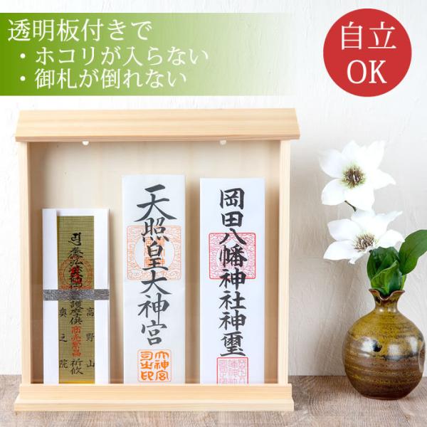 壁掛け・自立OKな神棚・お札立て。透明板付きでホコリしらず