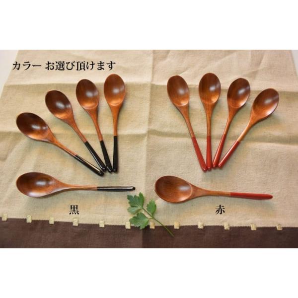 木のおしゃれスプーン 5本セット 送料無料 木製 木 赤/黒 スリ漆 和食器