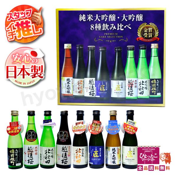 【日本酒初心者さんにも◎】日本酒 飲み比べセット 純米大吟醸 大吟醸 最高級 金賞 清酒 お試し プレゼント 詰め合わせ コストコ 大容量[300ml×8本入][1]