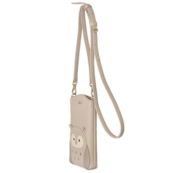 【イビサ公式】スマホショルダー 斜めがけ フクロウ ふくろう 多機能 カード入れ付き シュリンクレザー 本革 ハンドメイド 誕生日
