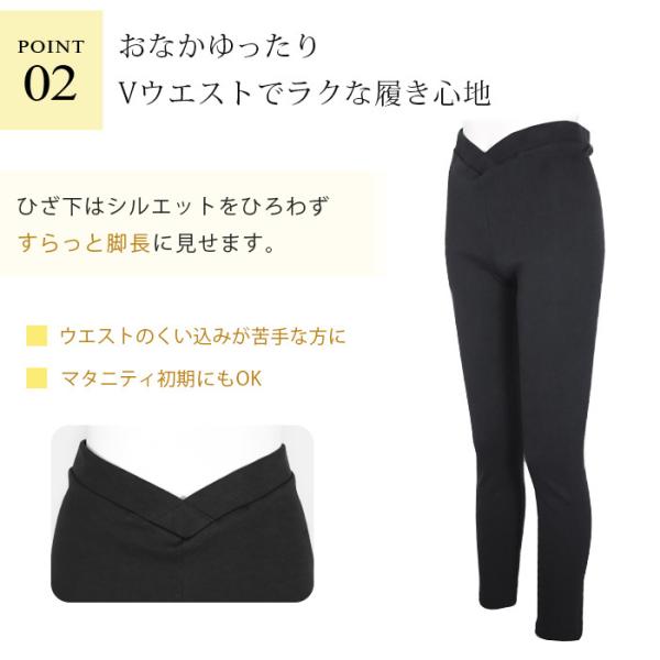 おなかゆったりのVデザインなので、ウエストのくい込みが苦手な方や妊娠初期の方にもおすすめです。
