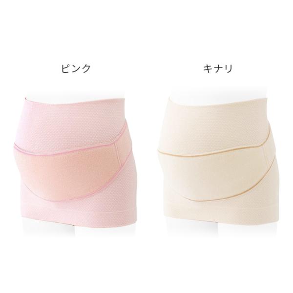 中期〜後期は補助ベルトを重ねておなかを支え、腰や背中への負担を軽減します。