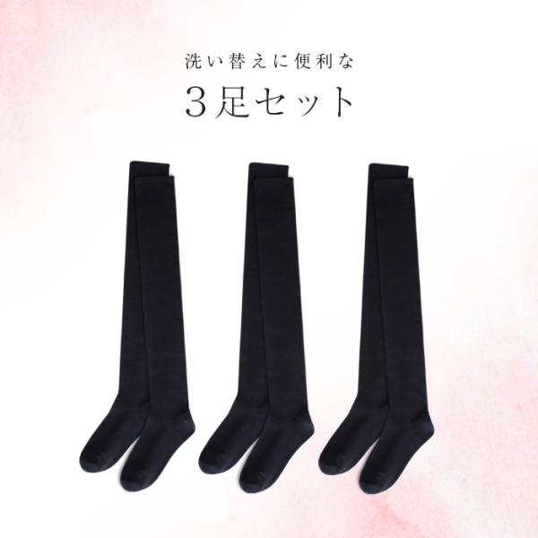 3足セット オーバーニーソックス 綿混 表糸綿100% 抗菌 防臭 靴下 くつ下 ソックス 黒 ブラック 無地 セット ニーハイ 22-24cm 抗菌防臭 レディース *2