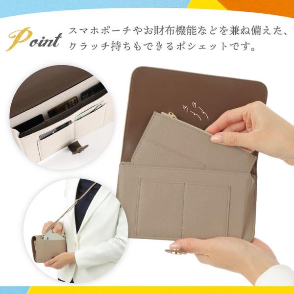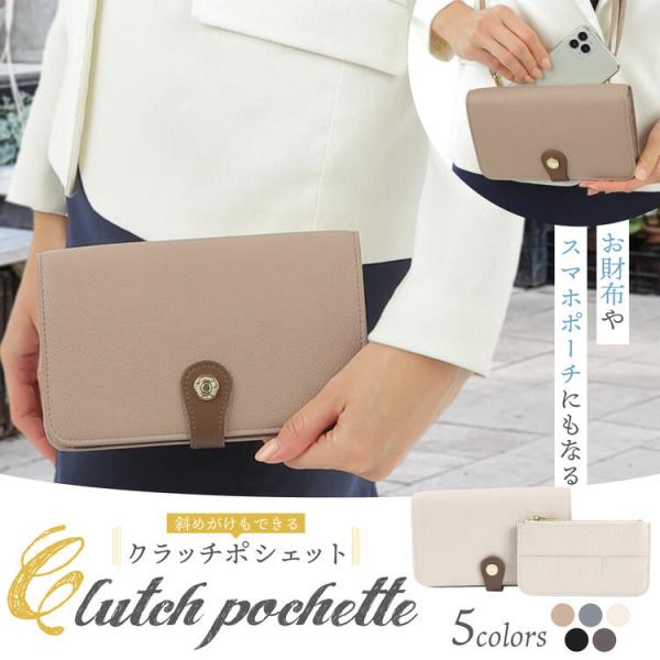 クラッチポシェット レディース 財布 ポーチ 一体型 クラッチウォレット カードケース スマホポーチ 斜めがけ ショルダー クラッチバッグ フラグメント 財布