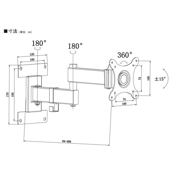 調整角度範囲 上下左右:±15° アーム部各関節:180°
