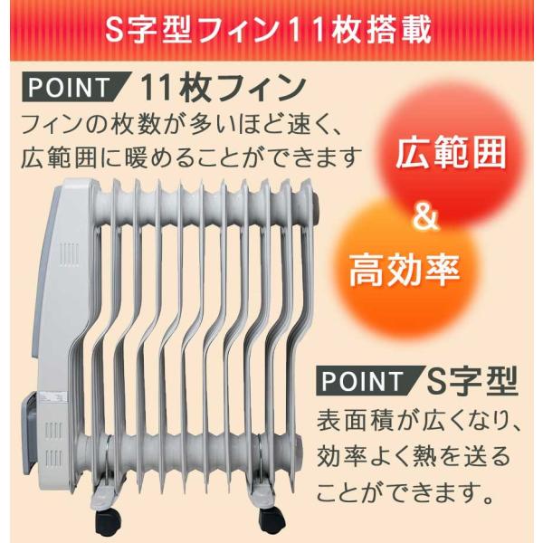 オイルヒーター S型 11枚フィン デジタル表示 1200W 700W 500W 室温設定 エコモード チャイルドロック機能 クリーンな空気 あったか 暖房