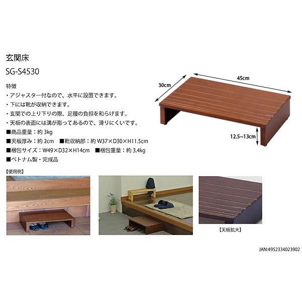 玄関踏み台 玄関床 フクダクラフト 幅45cm 奥行30cm 木製 玄関台 玄関ステップ台SG-S4530KDB代引不可 同梱不可