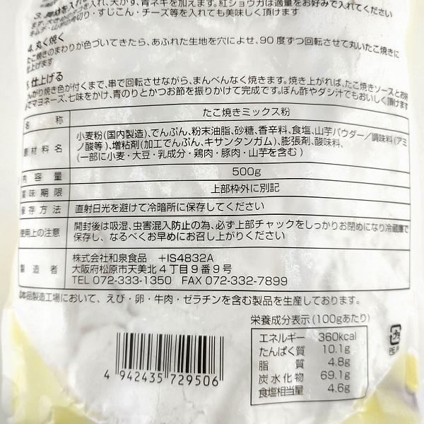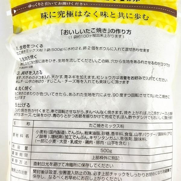 たこ焼き粉は、水・卵があれば、ご家庭で手軽にだしの効いたおいしいたこ焼きが作れます。
