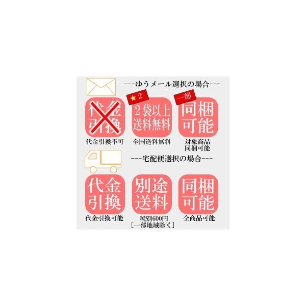 2袋以上ご購入の際に、配送方法を「ゆうメール」に変更すると、送料無料に自動計算されます。