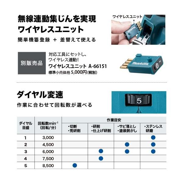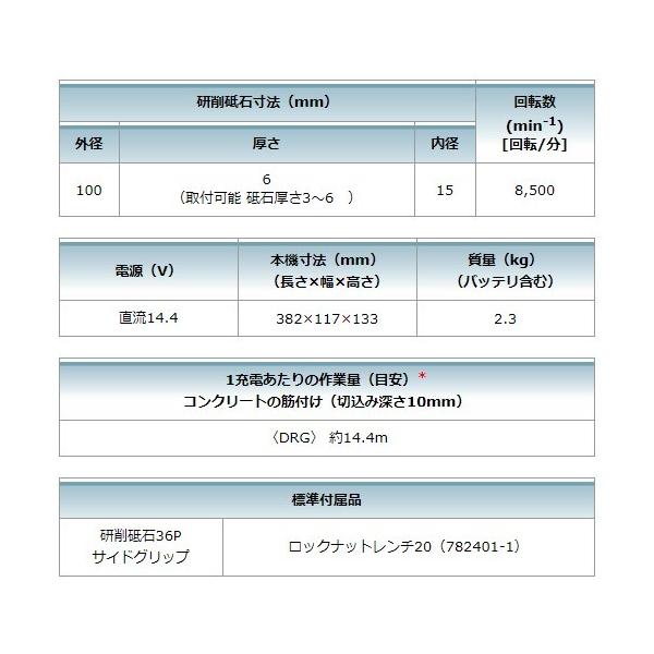 マキタ GA416DZ 100mm充電式ディスクグラインダ 本体のみ(バッテリ・充電器・ケース別売) ※ワイヤレスユニット別売