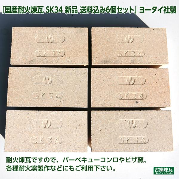 レンガ タイル ブロック 国産耐火煉瓦 SK34 新品 送料込み6個セット ヨータイ社製(北海道+送料300円)刻印入りレンガ 庭 ガーデン 花壇 重ねるだけ 簡単ピザ窯