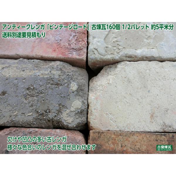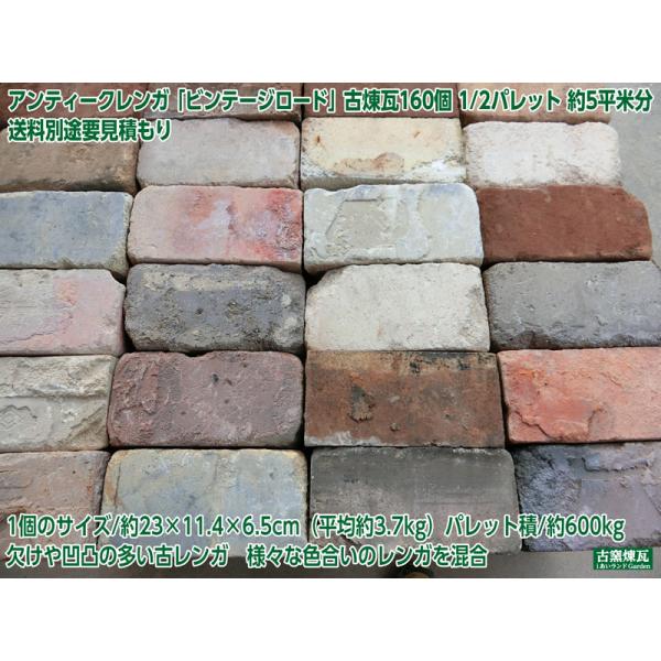 レンガ タイル 敷きレンガ アンティークレンガ ビンテージロード160個 1/2パレット 約5平米分(送料要見積)花壇 庭 国産 古煉瓦 耐火煉瓦 敷 駐車場 おしゃれ