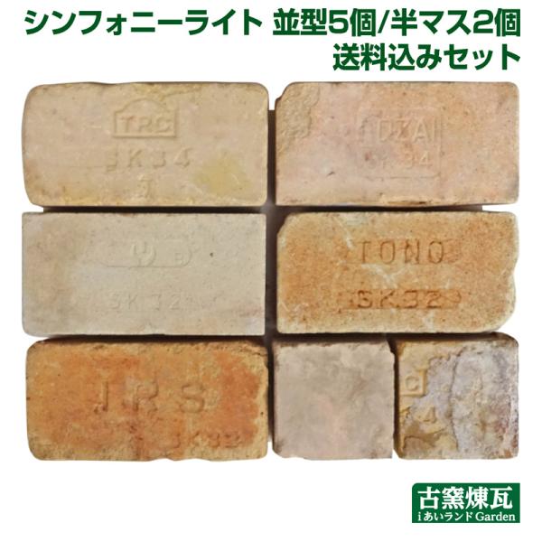 レンガ 国産 タイル ブロック アンティークレンガ シンフォニーライト並型5個 半マス2個 送料込セット(北海道+送料300円)文字刻印 花壇 庭 ガーデン おしゃれ