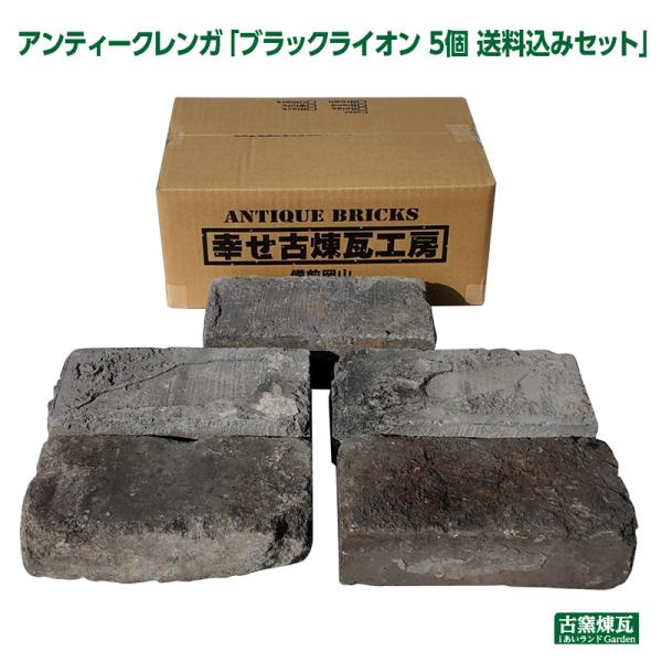 レンガ 刻印 ブロック アンティークレンガ ブラックライオン 5個送料込セット(北海道+送料300円)国産 敷きレンガ タイル 花壇 庭 ガーデニング おしゃれ