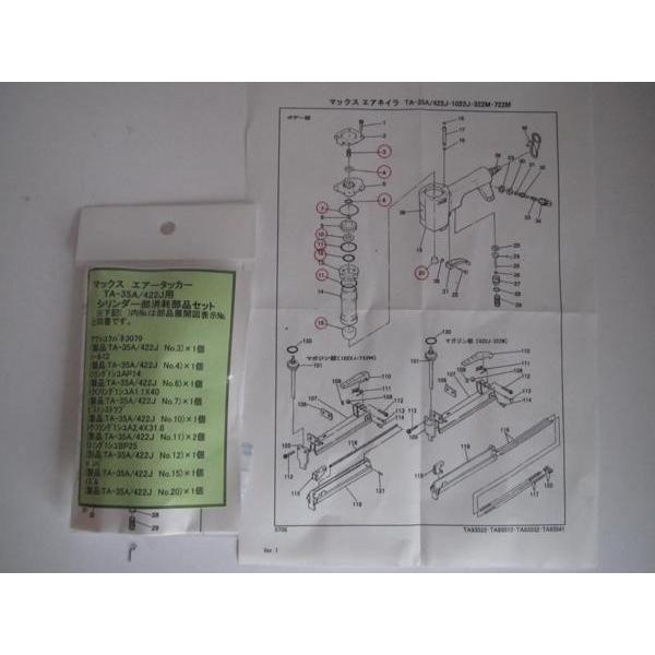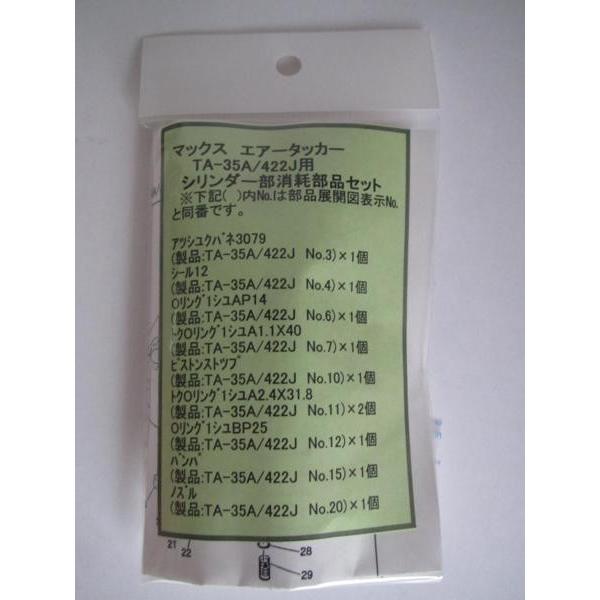 マックス エアータッカー TA-35A 422J用 シリンダー部消耗部品セット新品になります。