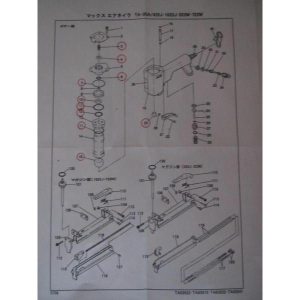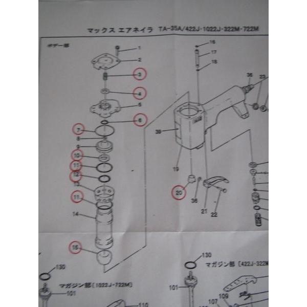 マックス エアータッカー TA-35A 422J用 シリンダー部 消耗部品 修理 補給 部品 パーツ シリンダー シ-ル アツシユクバネ Oリング MAX