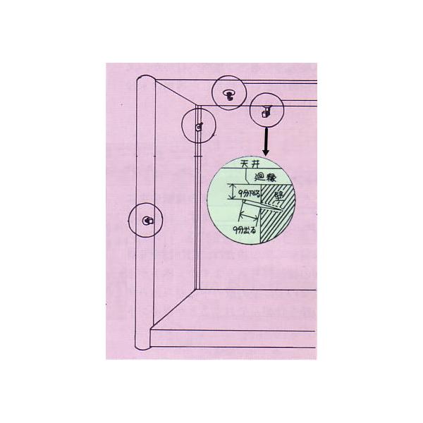 ●土壁などの床のまで一幅のみ掛ける場合、床の間の中央上部の廻縁から九分出るようにして打ち込みます。
