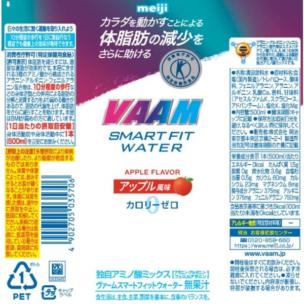 VAAM ヴァーム ケース販売 明治 ヴァーム VAAM スマートフィットウォーター アップル風味 500ml×24本 特定保健用食品