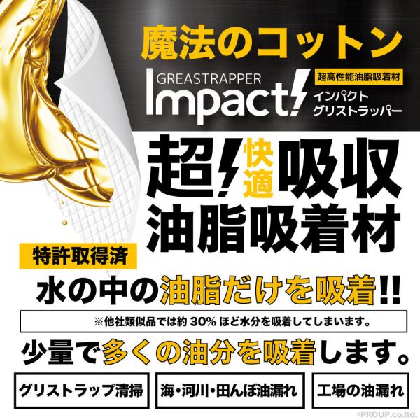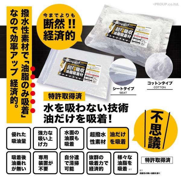 【新登場 特許取得の威力】 驚き自重の64倍吸収! 油を凄く吸う 超強力 油吸収コットン 油吸収シート グリストラップ インパクトグリストラッパー 50g