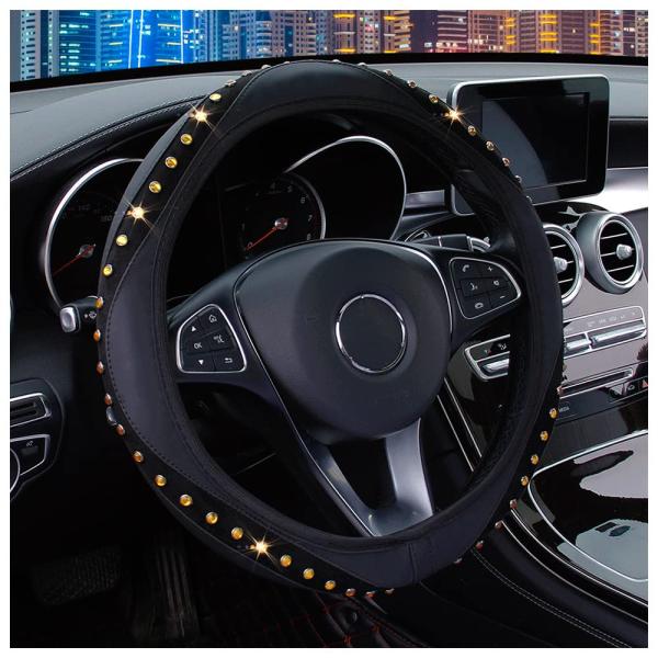 【並行輸入品】キラキララインストーンレザーハンドルカバー 15インチ スパークリングジェム 自動伸縮ステアリングホイールプロテクター キラキラク