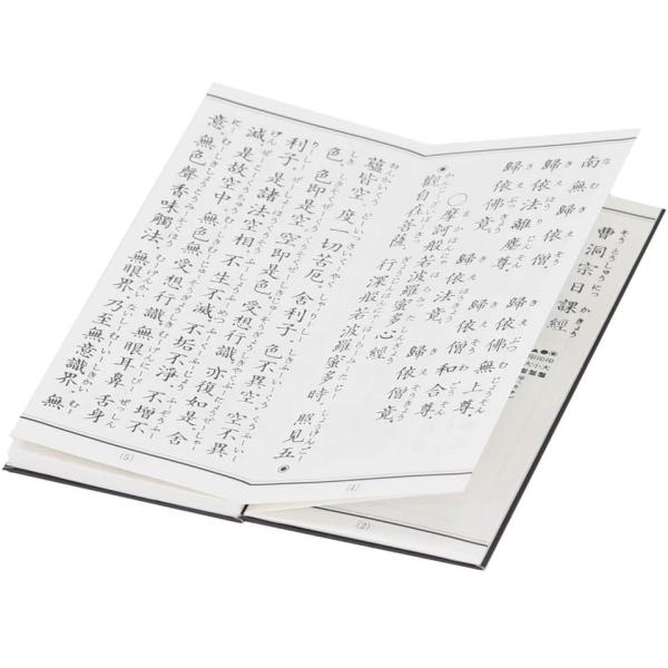 【内容】三帰礼文(訓読)、三帰礼文、懺悔文、三帰戒文、摩訶般若波羅密多心経(般若心経)、本尊上供、修證義(修証義)、妙法蓮華経観世音菩薩普門品偈(観音経)、普回向、大悲心陀羅尼、甘露門、招請発願、参同契(和訓)、宝鏡三昧(和訓)、消災妙吉祥陀羅尼、随願即得陀羅尼、龍樹菩薩讃準提大明陀羅尼(準提陀羅尼)、舎利礼文、四弘誓願文、曹洞宗聖日表、曹洞宗宗歌