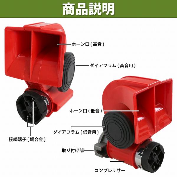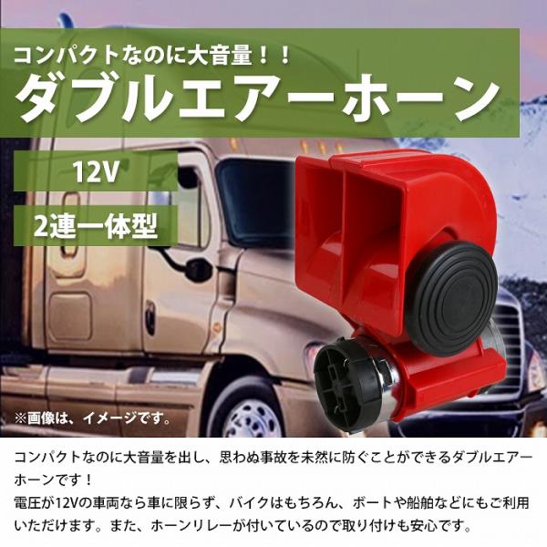 ダブル エアー ホーン コンプレッサー 一体型 12V 大音量 エア ツイン コンパクト ラッパ クラクション 車 バイク 船 ボート