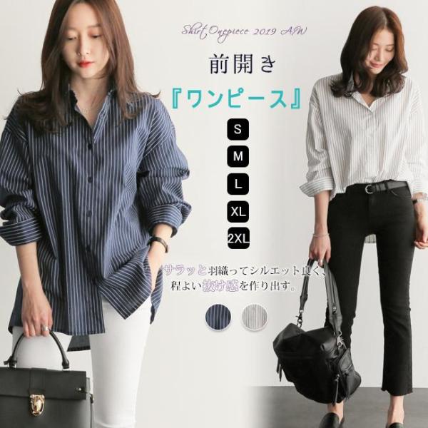 ブラウス シャツ レディース トップス メール便 長袖 ストライプ ロング ドロップショルダー ゆったり 大きいサイズ
