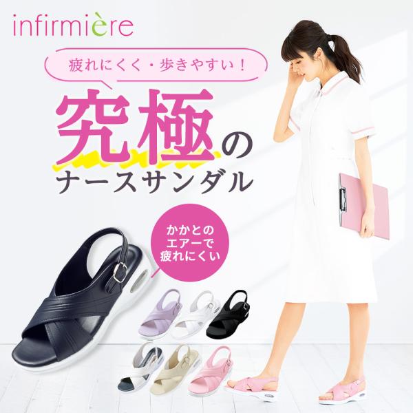ナースサンダル ナースシューズ 白 黒 疲れにくい ヒール 5cm 静音 軽量 看護師 靴 アンファミエ クロスエアーサンダル