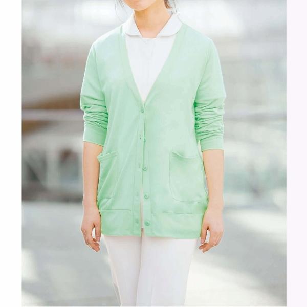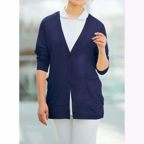 ナースカーディガン 看護師 白衣 医療 介護 事務 受付 レディース アンファミエ 自宅で洗える!なめらか綿混Vネックカーディガン(ロング丈)